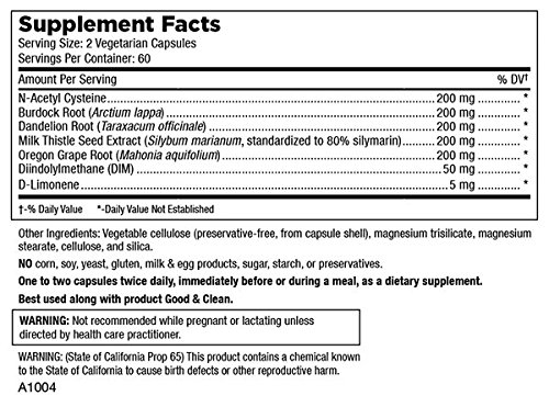 -. Feature : BURDOCK ROOT / DANDELION, / MILK THISTLE SEED EXTRACT / OREGON GRAPE ROOT / D-LIMONENE