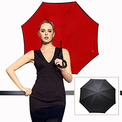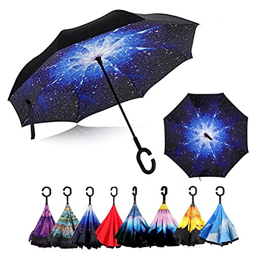 -. Title : Reverse/Inverted Double-Layer Waterproof Straight Umbrella, Self-Standing & C-Shape Handle & Carrying Bag for Free Hands, Inside-Out Folding for Car Use