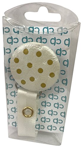 -. Title : ClassyPaci Leather Dot Pacifier Clip, Cream/Gold