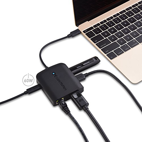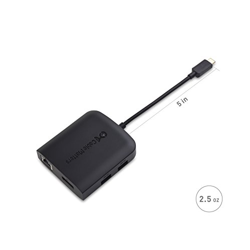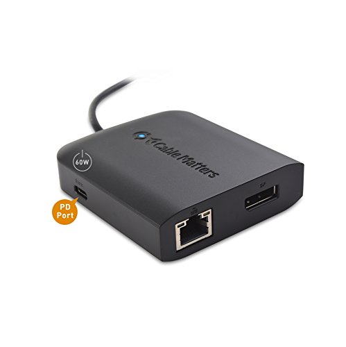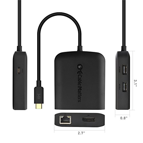 Cable Matters USB-C to 4K 60Hz DisplayPort Multiport Adapter with 2x USB, Ethernet, and Power Delivery (Thunderbolt 3 Port Compatible) in Black