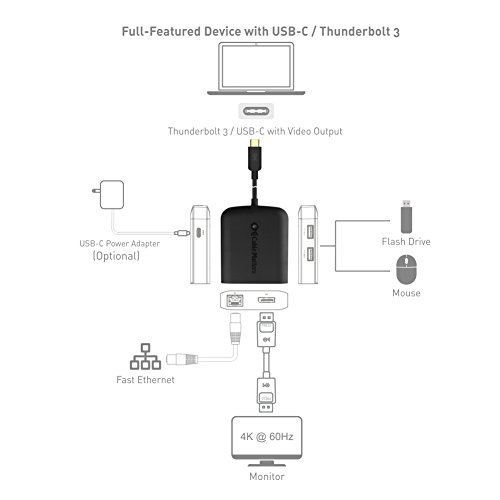 USB-C MINI DOCK adds fast Ethernet (100 mbps), USB 2.0, and DislayPort over a single USB-C connection; Connect to a computer with a USB Type-C or Thunderbolt 3 port; USB-C port of device requires DisplayPort Alternate Mode support to view video over USB