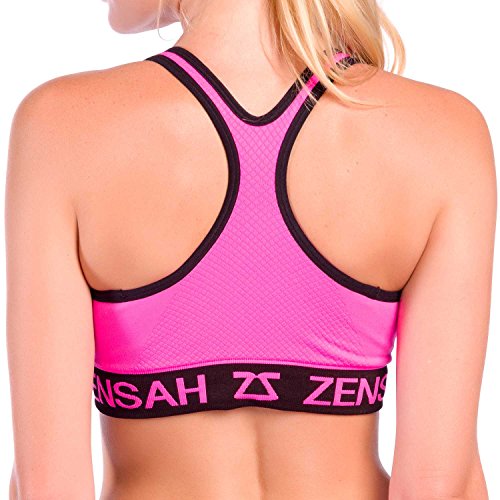 -. Binding : Apparel -. Brand : Zensah -. Department : womens -. Feature : Reversible sports bra easily Shifts from black to contrast colors for versatility and style / Seamless design to prevent chafing ng on both sides / Moisture wicking and anti-odor fabric with silver ION technology keeps athletes dry and prevents odor build up / Racerback for free movement and scoop neck for superior support and coverage / Comfortable and supportive for a/B cup runners. Perfect for all other activities including c-cup athletes -. Label : Zensah -. Manufacturer : Zensah -. Model : 9514-P -. MPN : 9514-P -. NumberOfItems : 1 -. PartNumber : 9514-P -. ProductGroup : Sports -. ProductTypeName : SPORTING_GOODS -. Publisher : Zensah -. Size : One Size -. Studio : Zensah -. Title : Zensah Womens Reversible Sports Bra - Seamless Sport Bra