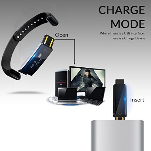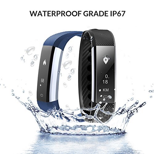 POWERFUL FUNCTION: The sport fitness band can sync date and time, notifications, it has remote camera control, anti-loss alert, and a sedentary alert with OLED display. It has a waterproof rating of IP67(works under water up to about 1 meter) suit for swimming.