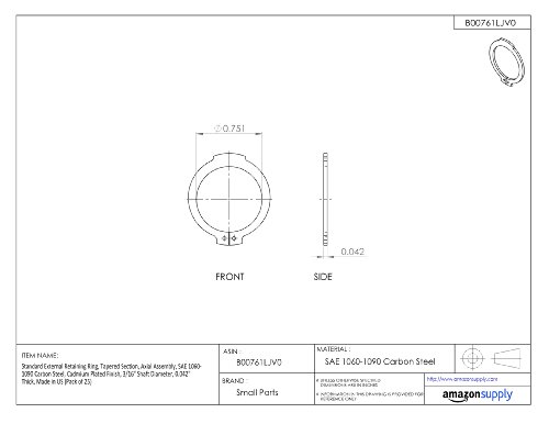 Standard External Retaining Ring, Tapered Section, Axial Assembly, 1060-1090 Carbon Steel, Cadmium Plated Finish, 5/32" Shaft Diameter, 0.025" Thick, Made in US (Pack of 25)