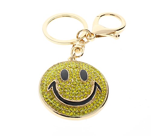 (T Square)/Accessories/Wallets, Money Key Organizers/DIRECT FROM USA/Rhinestone Bling Gold Tone Key Chain Fob Purse Charm Emoji Smiley Face