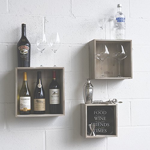 BRING THE CLASS ~ Having your wine and other beverages hanging up adds a spice to your kitchen or dining area that is certain to impress. With 6 inches wide and 13 “ long cube shelves you can store wine or liquor bottle and your glasses .