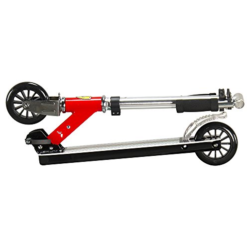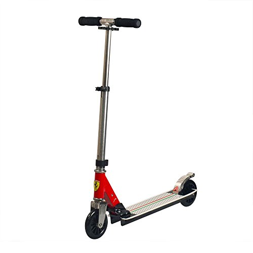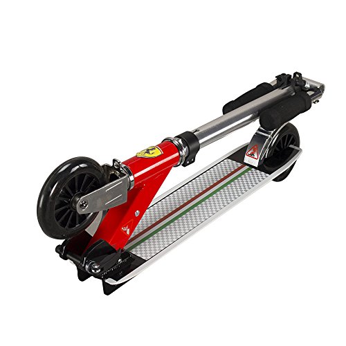 -. Feature : Ferrari brand designed Pro Scooter, unique Ferrari product identification number, authentic Ferrari shield, no assembly required / High-strength frame & deck are made of top quality lightweight aluminum to support max 100kg / Reinforced rear foot brake delivers responsive stopping power; Wear resistant PU wheels measure 125*25 mm / Three-stage height adjustable and abrasion resistant soft foam handlebar to suit users of all ages, engineered for street and park riding / Easily foldable for compact storage and transportation, folded dimensions are 78*13*20 cm