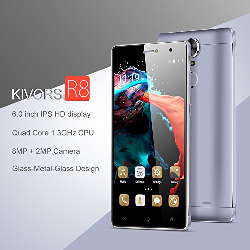 -. Title : Kivors R8 6.0" Unlocked Smartphone Advance Android 5.1 - Unlocked Dual Sim Cell Phones MTK6580A Quad Core 1.3GHz ROM 8GB Dual Camera GSM/3G Quadband Touchscreen Android Phones WIFI Bluetooth