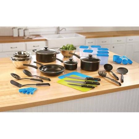 -. Title : 40-piece Aluminum Essential Kitchen Set - 7pc Cookware Set, 15pc Prep Set, 18pc Storage Set
