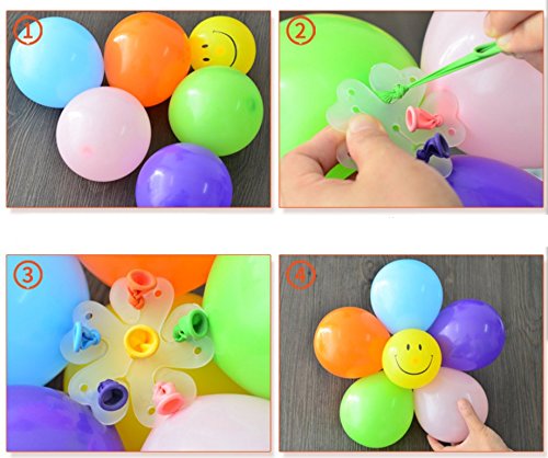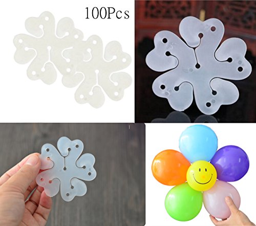-. Feature : Packaged included:100Pcs;Diameter 6.5cm/2.56" / Function: Make 5 balloons in 1 balloon flower, geart for any balloon / Material:Durable plastic.Can be resued,very economical and fast. / These Balloon Clip will help you to make your balloons display be easy! / Great for Wedding, Party, Nursery or your garden decoration。Decorate your party or celebration,make it more attractive.