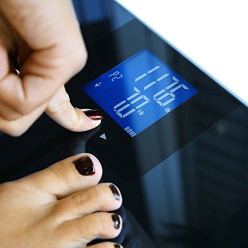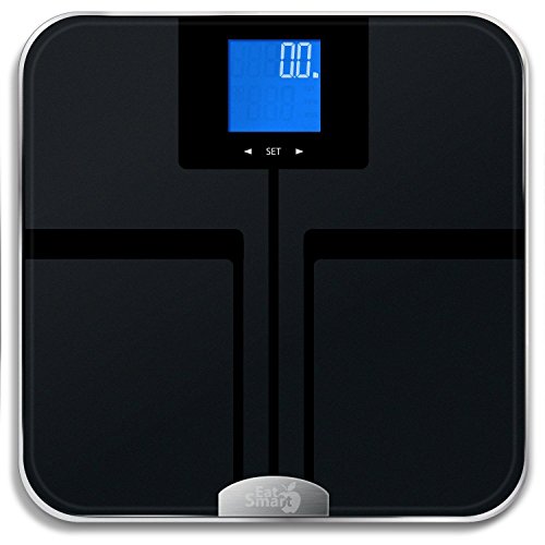 -. Feature : The EatSmart Precision GetFit is not your ordinary bathroom scale as it can quickly and easily measure weight, body fat, body water, body muscle and bone mass using our new ITO BIA technology. This scale is perfect for individuals who are serious about taking control of their health. / BIA (Bio-Electrical Impedance Analysis) technology allows you to easily calculate your body fitness by imputing information of gender, height, age, activity level and your weight. In bare feet, this technology sends a low-level electrical signal though your body fat and then measures the resistance the signal encounters. This signal is perfectly safe and will not be felt. / The Precision GetFit Scale stores up to 8 different users' personal profiles and will be able to recognize these users as soon as they step onto the scale. This auto recognition software makes it simple to operate, since all you have to do is stand on the platform barefoot and it identifies who you are based on past weight. Not having to select a user gives it the same functionality as a basic bathroom scale with added benefit of % body fat, % body muscle, % body water and bone mass. / Let's not forget about its universal EatSmart features! The Precision GetFit uses "Step-On" technology which means no more tapping to turn on your scale. It measures up to 400lbs and will display an accurate readout to the nearest .2 lbs on the oversized 3.5" LCD display. Its sleek design and slim profile fits perfectly into any surrounding. The touch screen interface makes it one of the most user friendly bathroom scales on the market today. / Along with your Precision GetFit, you receive our easy to follow Instruction Manual (which also defines body fat, body water, body muscle and bone mass) and 4 AAA batteries. 100% EatSmart Guaranteed Product Satisfaction. Customer satisfaction is our highest P.R.Iority. Contact us via phone or email anytime for support.