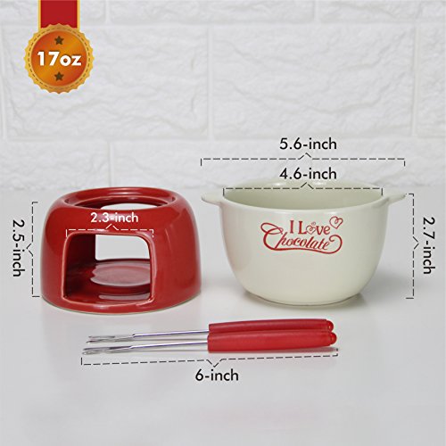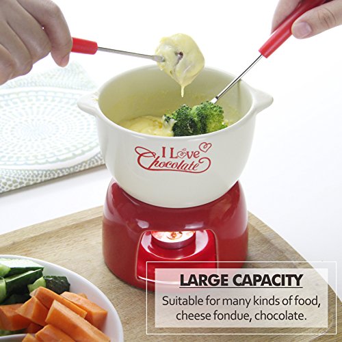 Color:Red /7.5 OZ Easy fondue at home! It's a cold winter weather,choose DOWAN Tapas Fondue will melt everyone's heart.Fondue that's gaining more and more popularity,because who doesn't love dipping bread and other garnishes into fresh, hot cheese? The tapas fondue's convenient size makes it ideal for sampling different types of cheese fondues across a broad buffet table.Pick out your favorite fondue cheese or chocolate, experiment, and enjoy. HOW TO WORK ? *FONDUE FUN: Works for both cheese and chocolate. *MICROWAVE SAFE: Melted cheese or chocolate in a flash - no stove needed. *SIMPLE ELEGANT: Heated by a candle - no lighter fluid, no cords. *BEST GIFT:Your best gift choose for winter festival. WHY CHOOSE DOWAN PORCELAIN FONDUE? --DOWAN porcelain Approved by FDA, SGS, Global Quality Inspection Standards for Ceramic Items. Microwave, oven, and freezer safe. --Compared with other material, Ceramic is the material of choice for over-the-candle warming because it holds in the heat without letting the flame burn your butter or damage the delicate texture of your sauce. --It can be cleaned up in cold winter easily, and dishwasher safe. YOUR CONFIDENCE ASSURED - PEACE OF MIND GUARANTEE ?30 Day No-Chip Warranty. ??100% Satisfaction Guarantee. Our 30-day break-and-chip warranty covers every piece of item we sell. You can easily reach us by directly replying our after-sales service letter (usually sent after you placed an order) if there emerges a product problem or if you're dissatisfied with the product. We promise we will take immediate and feasible actions to address the problem to your satisfaction. May the odds be ever in your life with DOWAN. 0 |