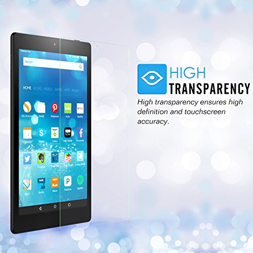 -. Feature : Premium Tempered Glass Screen Protector designed specifically for Amazon Fire HD 8 2015 Tablet (2015 Release Only) for perfect protection on touch screen. / 9H hardness offers protection from scratch, crash, Shock-resistant of the watch, 0.33mm thickness helps maintain the original touch experience, 90% light penetration ratio preserves the original viewing quality. / Easy to clUPC Oleophobicity coating reduces fingerP.R.Ints and oily streaks. / Advanced fitting technology makes convenience for the fitting and removal. / No bubbles or residue.