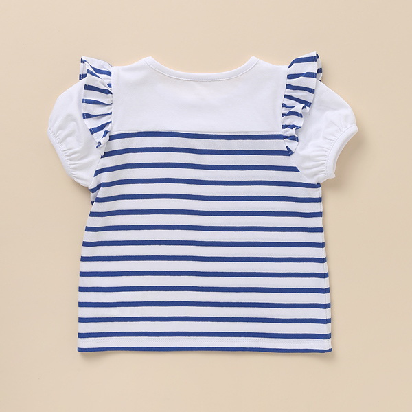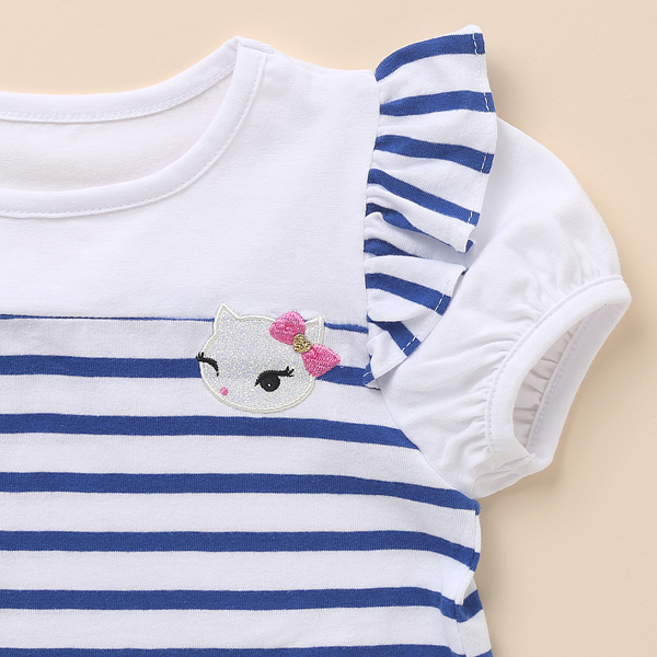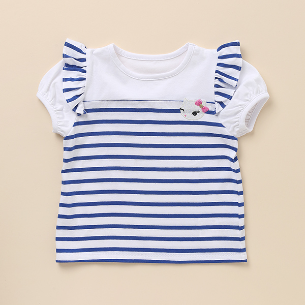 상품설명 귀여운 반팔 퍼프소매에 블루 ST 프릴 배색을 주어 더욱 사랑스러운 퍼프 소매 반팔 TS 입니다. 톈션좋은 원단을 활용해 편안하게 입을수 있는 아이템입니다. 상판의 골드빛 반짝이는 윙크하는 고양이 와팬 포인트가 사랑스럽습니다. 심플하고 귀여운 라인의 기본 TS로 데일리 아이템으로 어느 착장에나 활용하기 용이합니다.