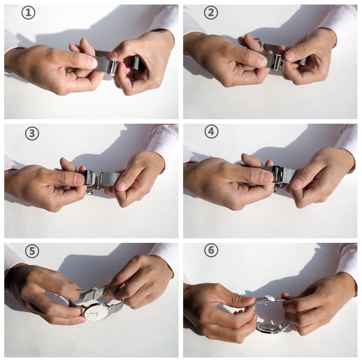 Slide the strap until the size that fits the wrist fits properly and lock the mechanism.