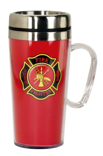 -. Title : Spoontiques Firefighter Insulated Travel Mug, Red