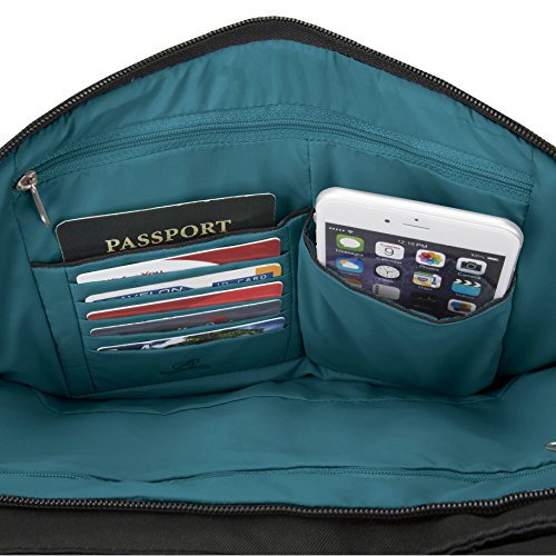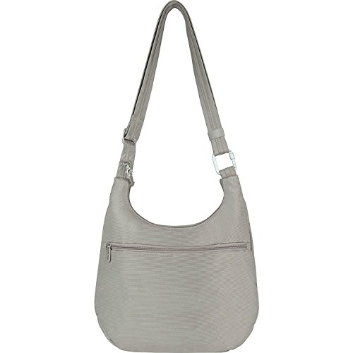 The Travelon Anti-Theft Classic Pleated Front Hobo combines style and function in an attractive security-conscious bag. Security never looked so good. The adjustable strap allows you to wear over the shoulder or as a crossbody bag. It can easily hold an iPad or tablet. The front compartment has a zip pocket plus an organizer with RFID blocking card and passport slots. The slash-resistant strap can be attached to a stationary object to prevent a grab-n-go. The front and rear slash pockets are perfect for frequently needed items. Two mesh expansion pockets are ideal for a water bottle, umbrella or sunglasses. Comes in Black, Purple, Cranberry, Midnight or Stone.Feature