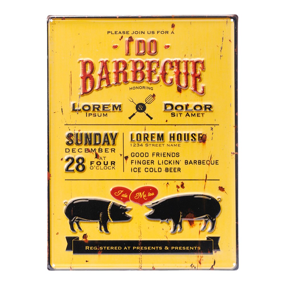 Antique design board Tin Signs metal L (30 × 40cm) barbecue