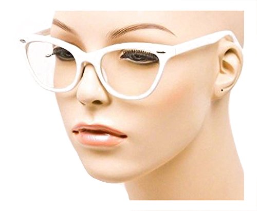 MJ Eyewear Cat Eye Teacher 80s Retro Clear Sunglasses Eyeglasses (WHITE, CLEAR)