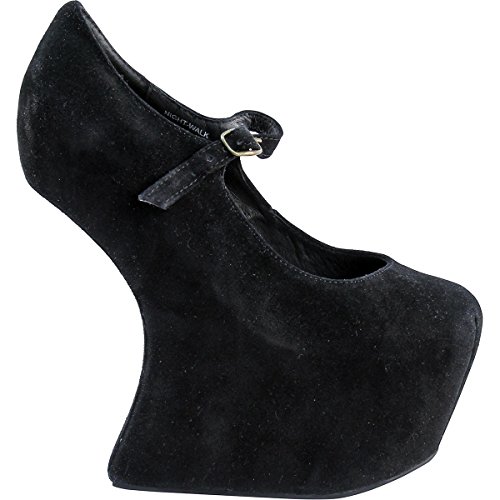 Binding : Apparel Product Description The NIGHT WALK by JC is sexy superhero style to the extreme! We've got our skintight black leather bodysuit all ready to go and now we've got a death-defying heeless heel to complete the outfit. Cute Maryjane strap softens the look but with a style this intense, you won't be able to go incognito. 6 1/2 heel and 2 1/4 platform. Suede upper and man made sole. Fits slightly big. Size US8 insole measures 9 6/8 or 25 cm. Each half size is 1/4 or .5cm difference. 0