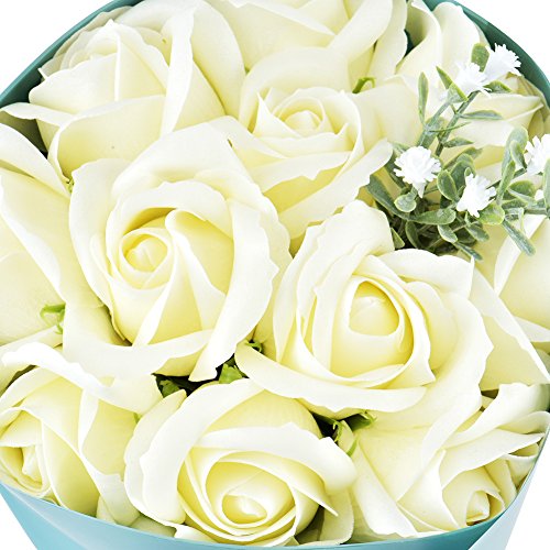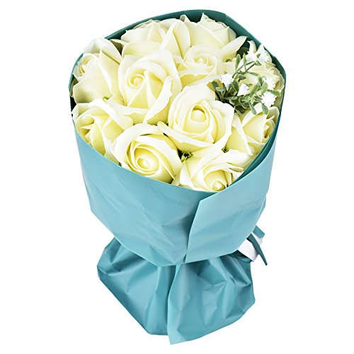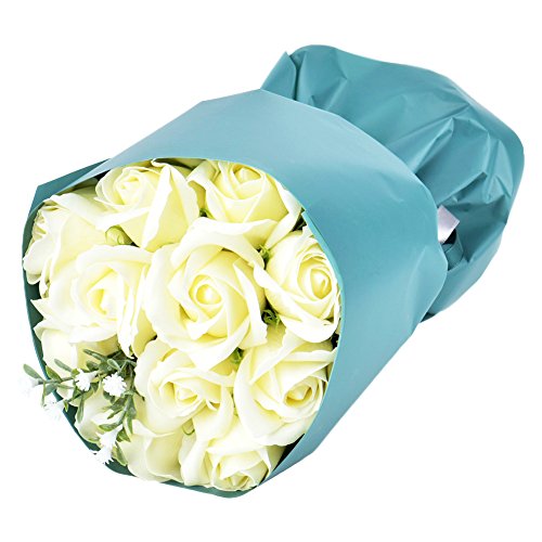 Wuddi Artificial Elegant Soap Real Touch Flower Wedding Bouquets for Mothers’ Day Gifts, Party, Anniversary, Decoration of Office and Coffee House Bouquet ,11 PCS (White)