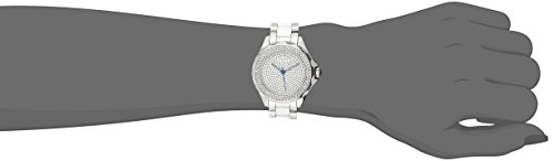 -. Feature : Precise Swiss quartz movement. Silver-tone, imitation pave dial / Genuine diamond hour markers / Silver-tone stainless steel bracelet with white ceramic inserts / Two rows of genuine crystals on the bezel / Water resistant to 99 feet (30 M): withstands rain and splashes of water, but not showering or submersion