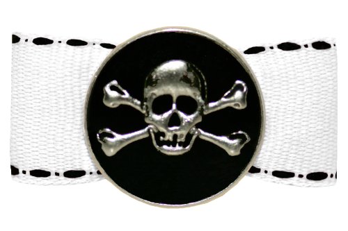 -. Title : Hot Bows Cool Bones, White with Black Topstitch with No-Slip French Clip for Dogs