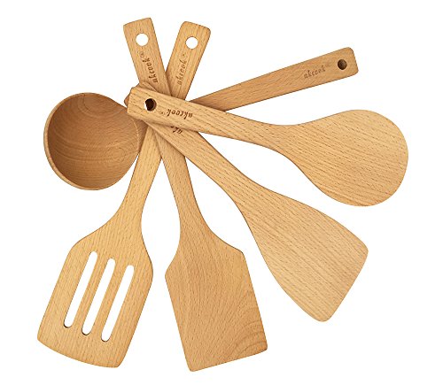 -. Title : AKcook 5-Pieces Natural Beech Wood Kitchen Cooking Utensils Set by AKcookテつョ