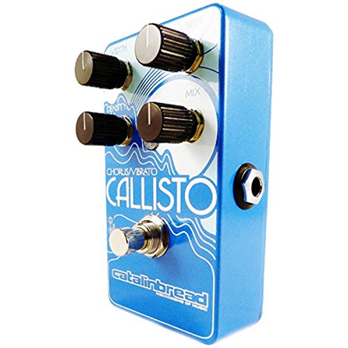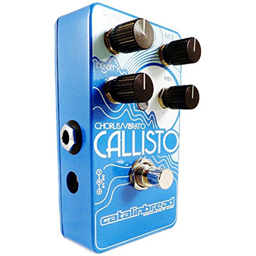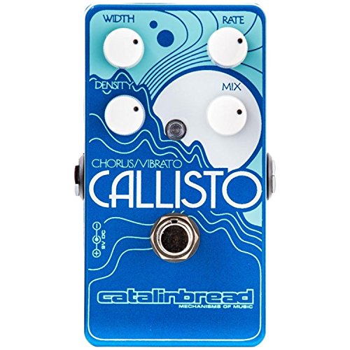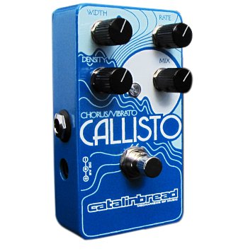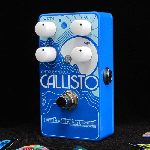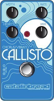 Studio : Catalinbread Publisher : Catalinbread Product Description The Catalinbread Callisto is a Chorus/Vibrato pedal, which employs an MN3007 Bucket Brigade chip at its core. It's interface is simple, intuitive, and provides a multitude of sounds ranging from subtle and shimmer to rotary speaker-like to off-kilter warping/warble sounds. A twist of the DENSITY knob continuously adjusts the delay line time delivering classic chorus sounds from fat warm to airy subtle. MIX knob smoothly dials everything from lush chorusing, to true pitch vibrato, to sea sickening warble, and has the ability to run clean dry to completely wet. The sweep depth of the chorusing is controlled by the WIDTH control. The RATE range can go from slow and syrupy to almost ring-mod intensity.