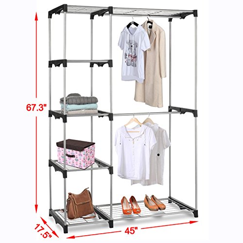 -. Feature : Double Rod Closet offers you a sturdy option for creating garment and accessory storage / Durable environmental friendly chrome plated tubing / Made with black coated steel and heavy duty resin connectors / Easy to assemble / Free & Fast Shipping(US Stock)