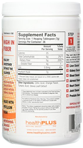 -. Binding : Health and Beauty -. Brand : Health Plus -. EAN : 0083502112358 -. Feature : Health Plus -. IsAdultProduct : 0 -. Label : Health Plus -. Manufacturer : Health Plus -. Model : 083502112358 -. MPN : HPI11235 -. NumberOfItems : 1 -. PackageQuantity : 1 -. PartNumber : HPI11235 -. ProductGroup : Health and Beauty -. ProductTypeName : HEALTH_PERSONAL_CARE -. Publisher : Health Plus -. Size : 9 oz -. Studio : Health Plus -. Title : Colon Cleanse Stevia Orange Health Plus 9 oz Powder -. UPC : 083502112358