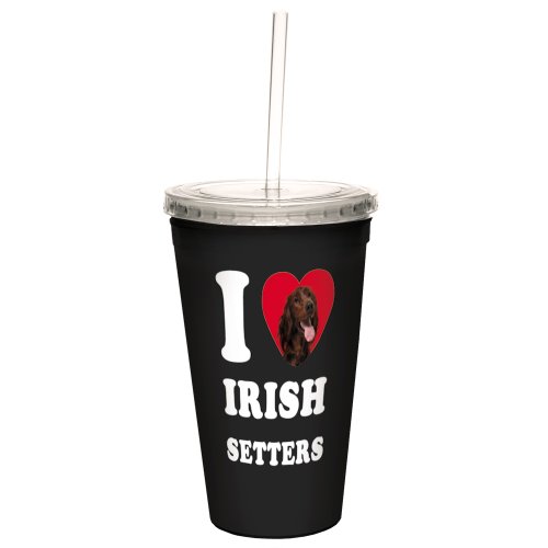 Tree-Free Greetings CC35067 I Heart Irish Setters Artful Traveler Double-Walled Cool Cup with Reusable Straw, 16-Ounce