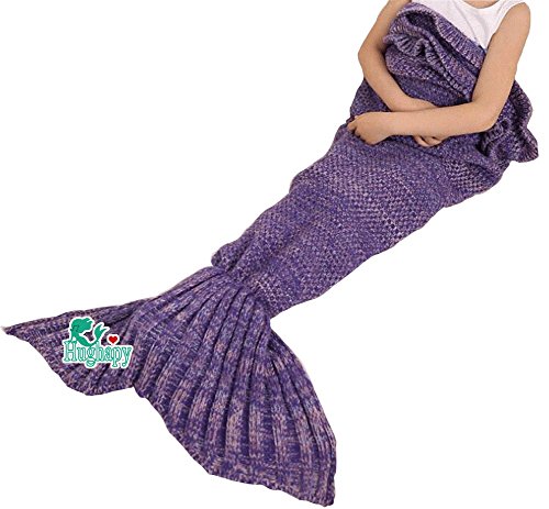 Hughapy Knitted Mermaid Tail Blanket for Kids Crochet Snuggle Mermaid, All Seasons Falbala Pattern Sleeping Blanket (Kids,Purple)