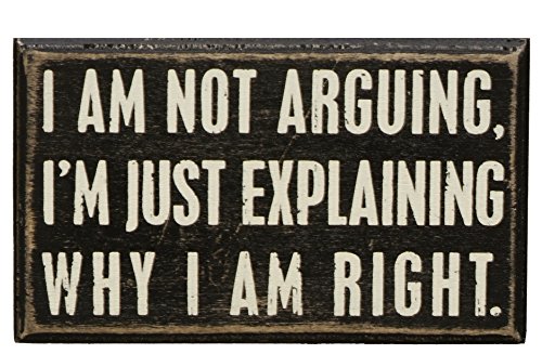 Primitives by Kathy Wood Box Sign, 5-Inch by 3-Inch, Not Arguing
