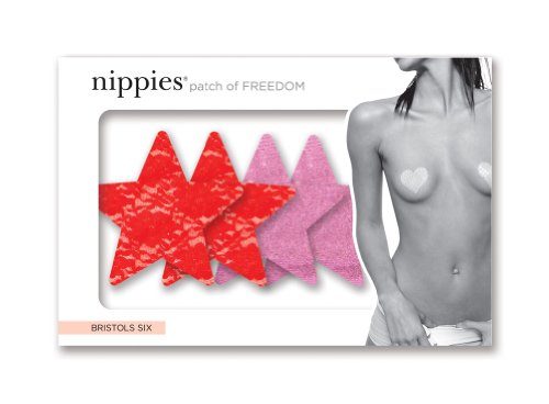 - Feature : Nippies are the first high-quality, high style nipple cover when you need a little coverage but can't (or don't want to!) wear a bra / Self-adhesive (no glueing - just peel and stick!) for easy application with an optional nipple protection pad for painless removal / Wrinkle-free lingerie fabrics stretch and smooth for shape and lift. / Waterproof and sweatproof adhesive makes Nippies perfect for all occasions: the office, dancing, dates, under a bikini top at the pool or beach, special events, or weddings / 1 pack has 2 pairs (1 pair red lace and 1 pair pink sparkles, 2 mini patch tests, and 4 nipple pads