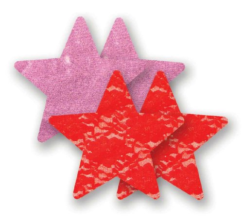 - Title : Nippies Red and Pink Lace Stars Adhesive Waterproof Fabric Nipple Cover Pasties