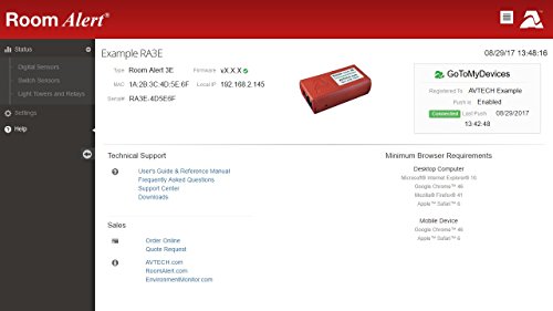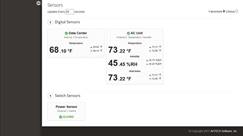 -. Feature : Easy Ethernet 'Plug & Play' setup for immediate IT & facilities physical environment monitoring. / Includes built-in sensor for digital temperature, Device ManageR software & "PUSH" technology. / Includes Power over Ethernet (PoE) built-in, 5V Power Adapter & GoToMyDevice Cloud Service / Includes ports for 1 digital sensor or Light Tower & Relay Adapter & 1 switch sensor or dry contact. / Offers advanced alerting by email, email-to-SMS, SNMP, webpage update and more.