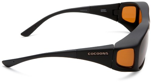 Designed to fit comfortably and securely over 99.5% of all prescription eyewear frames. Extra Large Fits over prescription frames measuring less than 5 1/2"w 2"h. Six sizes to choose from. 360° of Protection: It is important that a sunglass provides protection from all angles. Cocoons patented frame designs block damaging UV light and glare from all angles, completely isolating the eyes in a cocoon of filtered light. Each pair includes a custom designed protective neoprene case, large lens cloth and a limited lifetime frame warranty.Feature