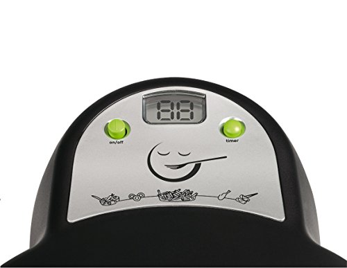Cook all your favorite fried food (up to 2.2 lbs) with only a tablespoon or less of oil;Simple on/off switch and digital countdown timer with buzzer for easy monitoring;Removable ceramic-coated nonstick pan (PTFE and PFOA free) for easy clean up;Secure lid for safe splatter-free cooking; stay-cool exterior; filter for odorless cooking;Color recipe book (38 recipes) and measuring spoon included; dishwasher-safe parts for quick cleanup