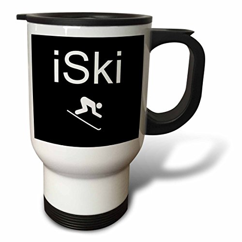 3dRose tm_180057_1 Iski, White Lettering on Black Background with Picture of Skier Stainless Steel Travel Mug, 14-Ounce