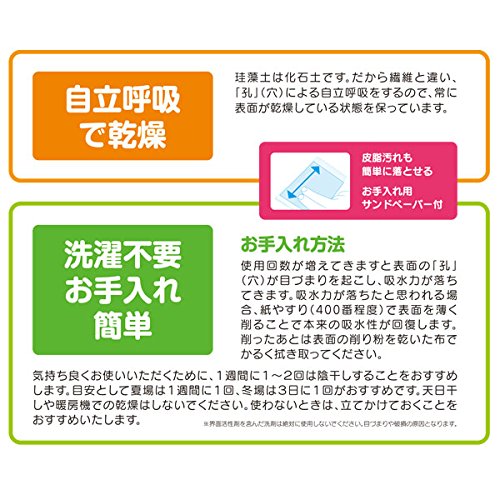 Diatomaceous earth basemat is a cause of hit that many merit which can not be thought in the previous bath mat which "wonderful water absorbing power" "deodorization and humidity adjustment effect" "suppression of mold and tick generation" "comfortable whenever washing is not needed"