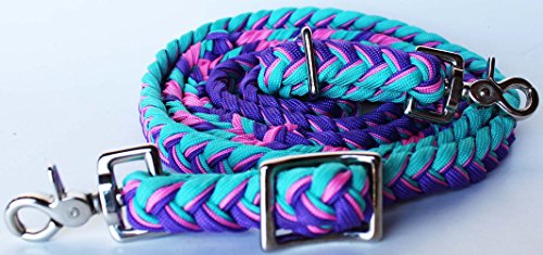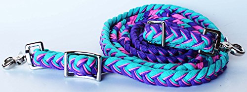 (ProRider)/Equestrian Sports/Tack/DIRECT FROM USA/Roping Knotted Horse Tack Western Barrel Reins Nylon Braided Turquoise 607212