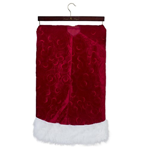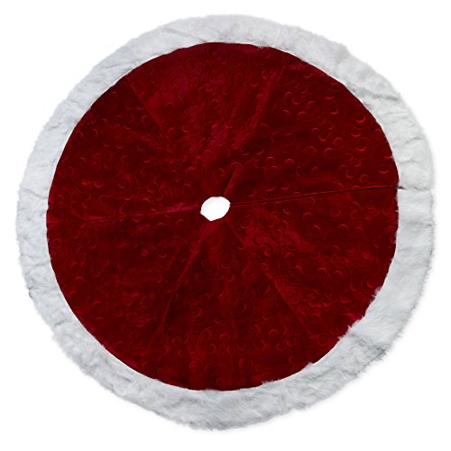 56 inch Red Velvet Embossed Design Plush Fabric Christmas Tree Skirt with Fur Trim