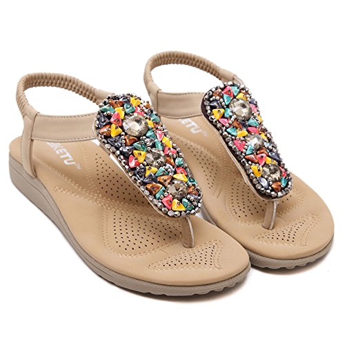 (Mobnau)/Women's/Sandals/DIRECT FROM USA/Mobnau Womens Jeweled Leather Thong Flip Flops Fashion Sandals
