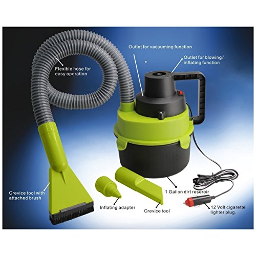 -. Feature : Directly attached to car cigarette lighter, you could have an amazing experience of an easy process / 12V DC power plug on/off switch, provides wet and dry pick-up long, flexible hose with brush / Reverse suction function inflates pool floats, life rafts and air mattresses with ease usage / Small enough to keep it in your car, boat, truck, suv