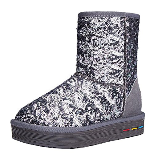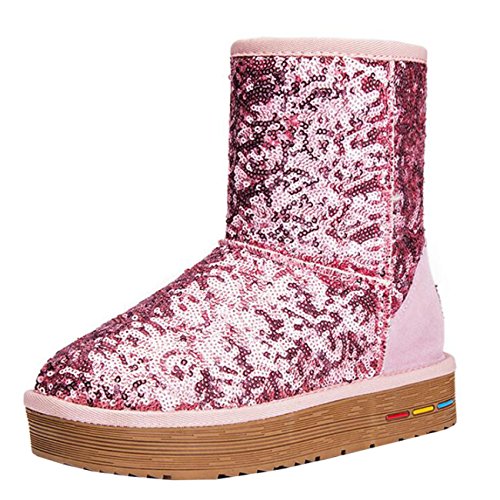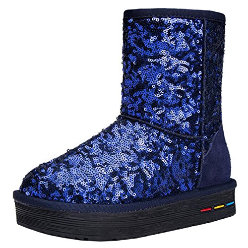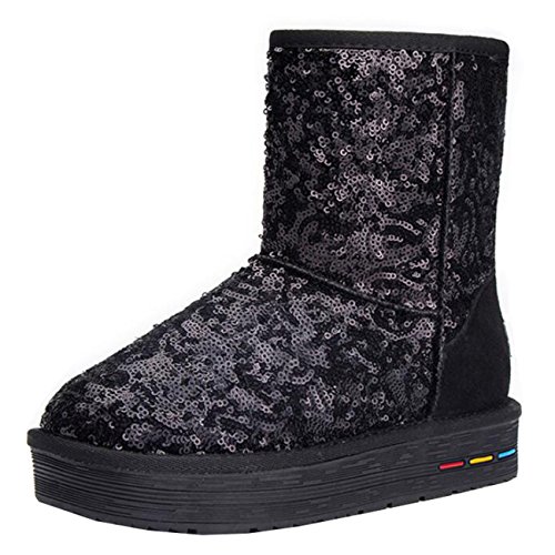(Mashiaoyi)/Women's/Boots/DIRECT FROM USA/Mashiaoyi Women's Round-Toe Flatform Slip-On Sequins Fur Snow Boots