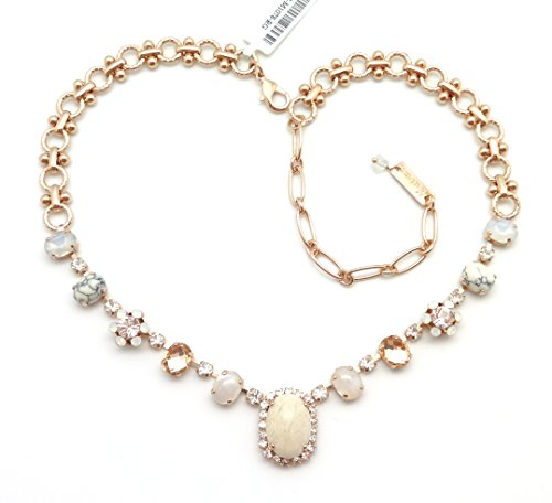 8 Individually Handset Faceted, Multi Faceted and Cabochon Oval cut and 10 small Round cut Swarovski Crystals and Mineral Stones with 1 Large Oval and 2 Flower Swarovski Crystal Encrusted Design Elements