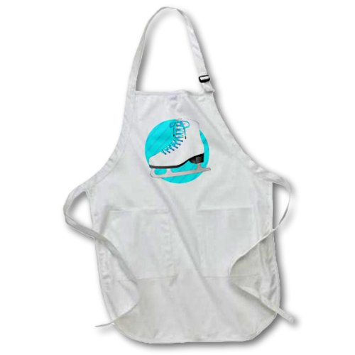 3dRose apr_77472_1 Figure Skating Gifts-Blue Ice Skate on Stripes-Full Length Apron with Pockets, 22 by 30-Inch, White