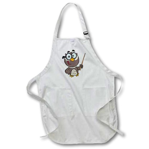 3dRose apr_118631_4 Cute Wise Owl Teaching Teacher Cartoon Full Length Apron with Pockets, 22 by 30-Inch, Black