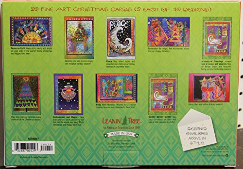 Leanin' Tree Merry and Bright by Laurel Burch 20 Cards in a Pack Christmas Cards Made in USA